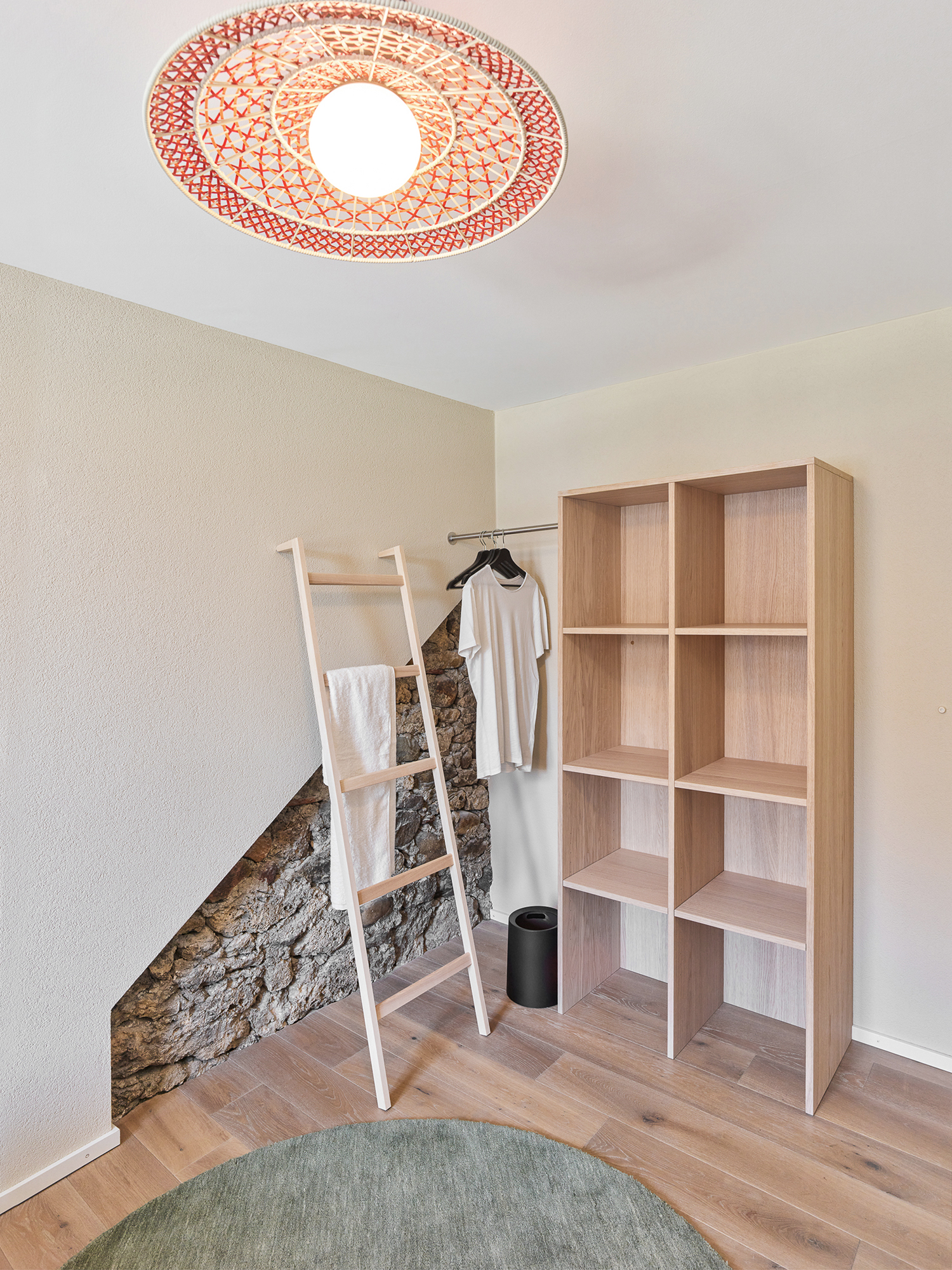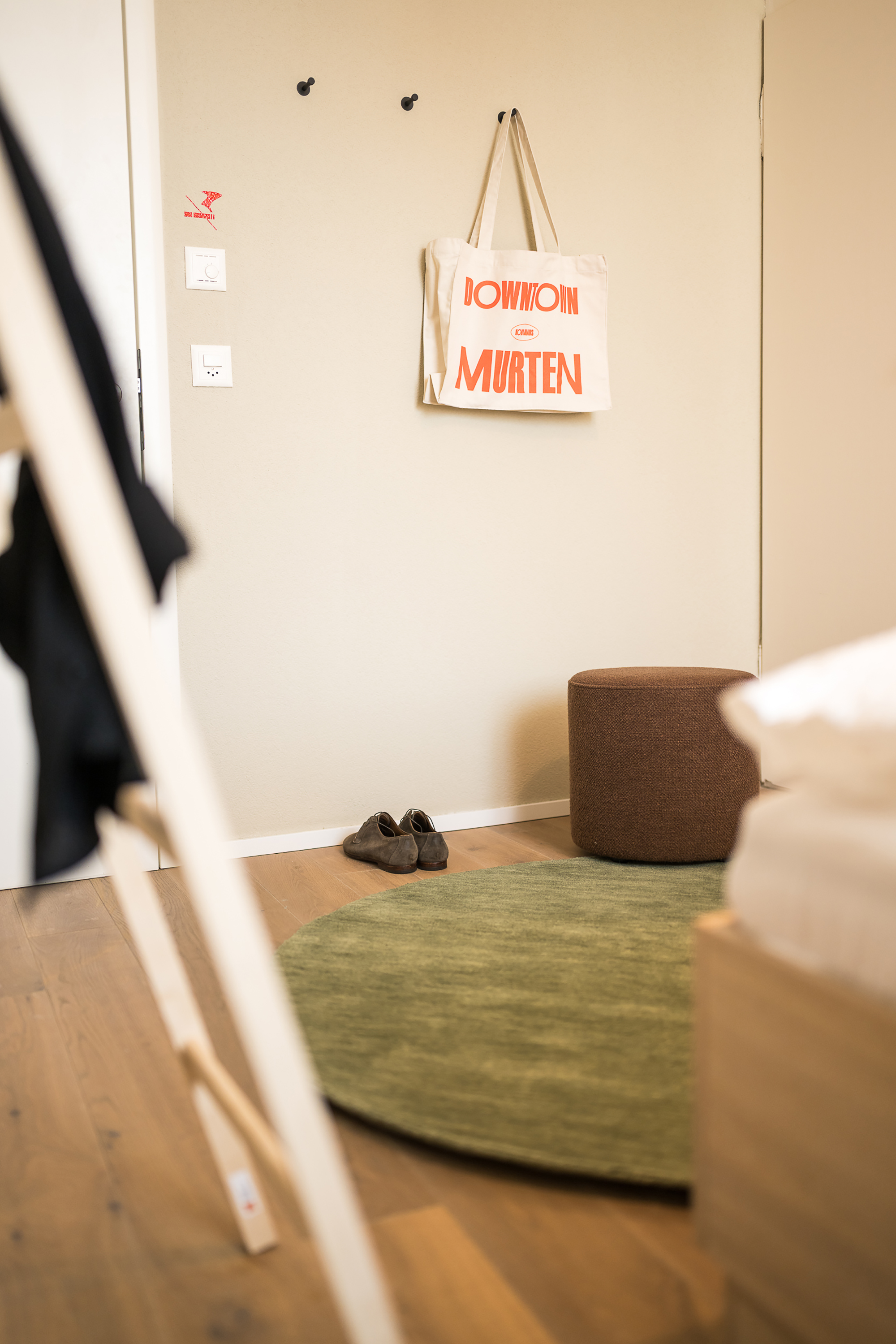 Mit den massgefertigten Schreinereinbauten und der neuen Möblierung wird der zurückhaltende und funktionale Stil der unteren Stockwerke (Café und Hotelzimmer) übernommen. Viel Holz und warme Farben sorgen für eine angenehme Raumstimmung.