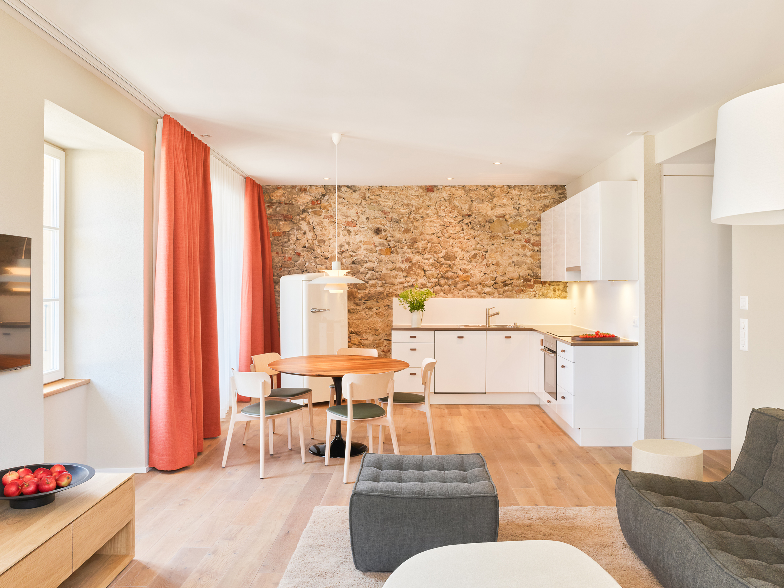 Die zwei Wohnungen werden nun im Zuge der Gesamtsanierung der Liegenschaft zu Ferienwohnungen des neuen 'Kornhaus' umgestaltet.